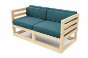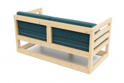 Каркас изделия выполнен из натурального и экологически чистого массива сосны. Чехлы съемные, в комплекте четыре приспинные подушки. Основанием служит реечное дно из массива сосны. На диване могут расположиться два взрослых человека, вес каждого до 140 кг. Сиденье может служить спальным местом. Данная мебель предназначена для закрытых помещений или веранд с крышей, прямой солнечный свет и дождь ей противопоказаны.
