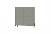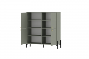Высокая вместительная тумба из серии «Нуар» с распашными дверцами и полками. Дверцы оборудованы петлями с доводчиками. Изделие установлено на высокие металлические опоры.